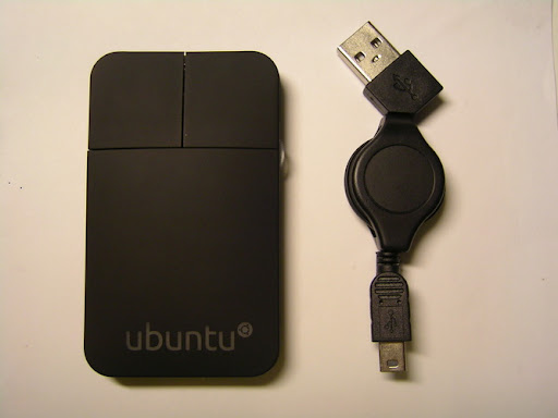 Сама по себе мышь плоская, что может показаться непривычно поначалу. Высота — 1,2 см. В нижней части - логотип Ubuntu, в верхней кнопочный блок.